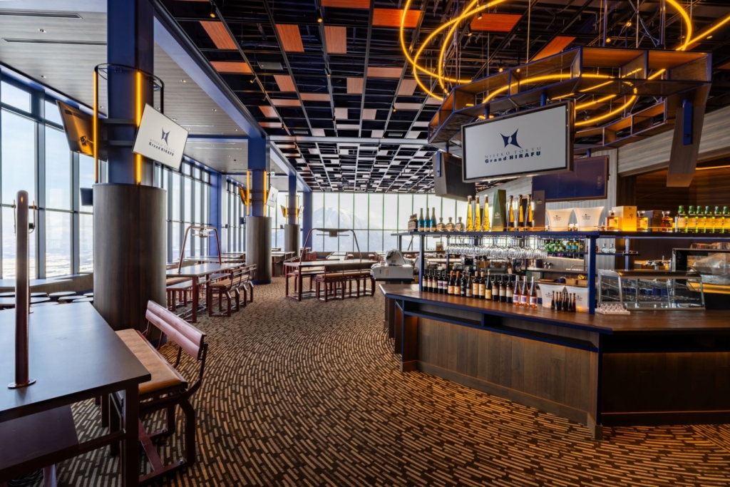 From an altitude of 813m, large windows offer a sweeping view of Mt. Yotei, allowing you to fully enjoy the grandeur of nature and the seasonal landscapes. In this open, spacious setting, you can savour refined cuisine and spend a luxurious moment over lunch or during après time.