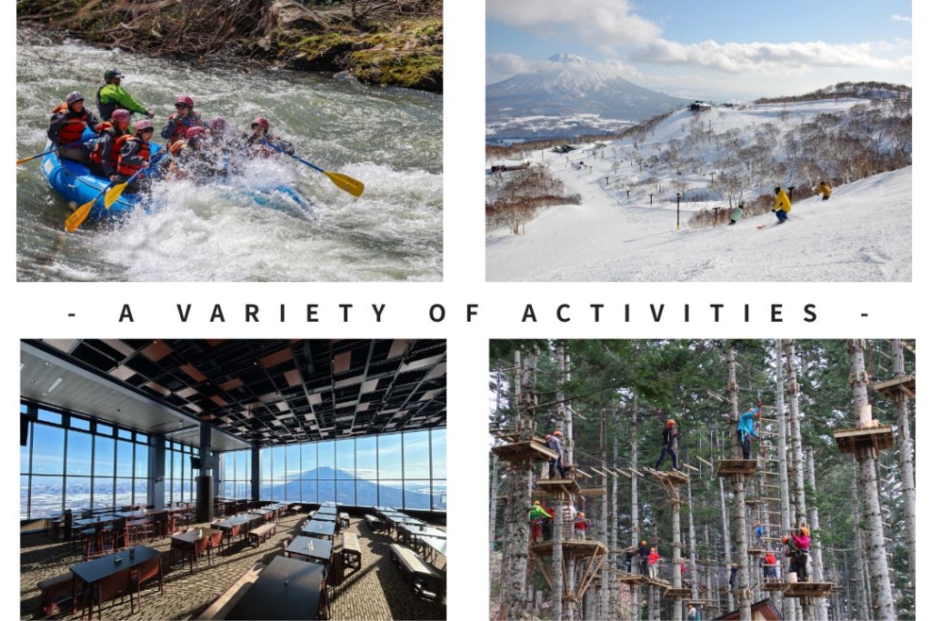 晴天の下、雄大な羊蹄山を望みながらスキーを楽しむのはもちろん、ベストシーズンを迎えるリバーラフティング、スキー場の森に広がるアドベンチャーパークなど、多彩なアクティビティを体験できます。